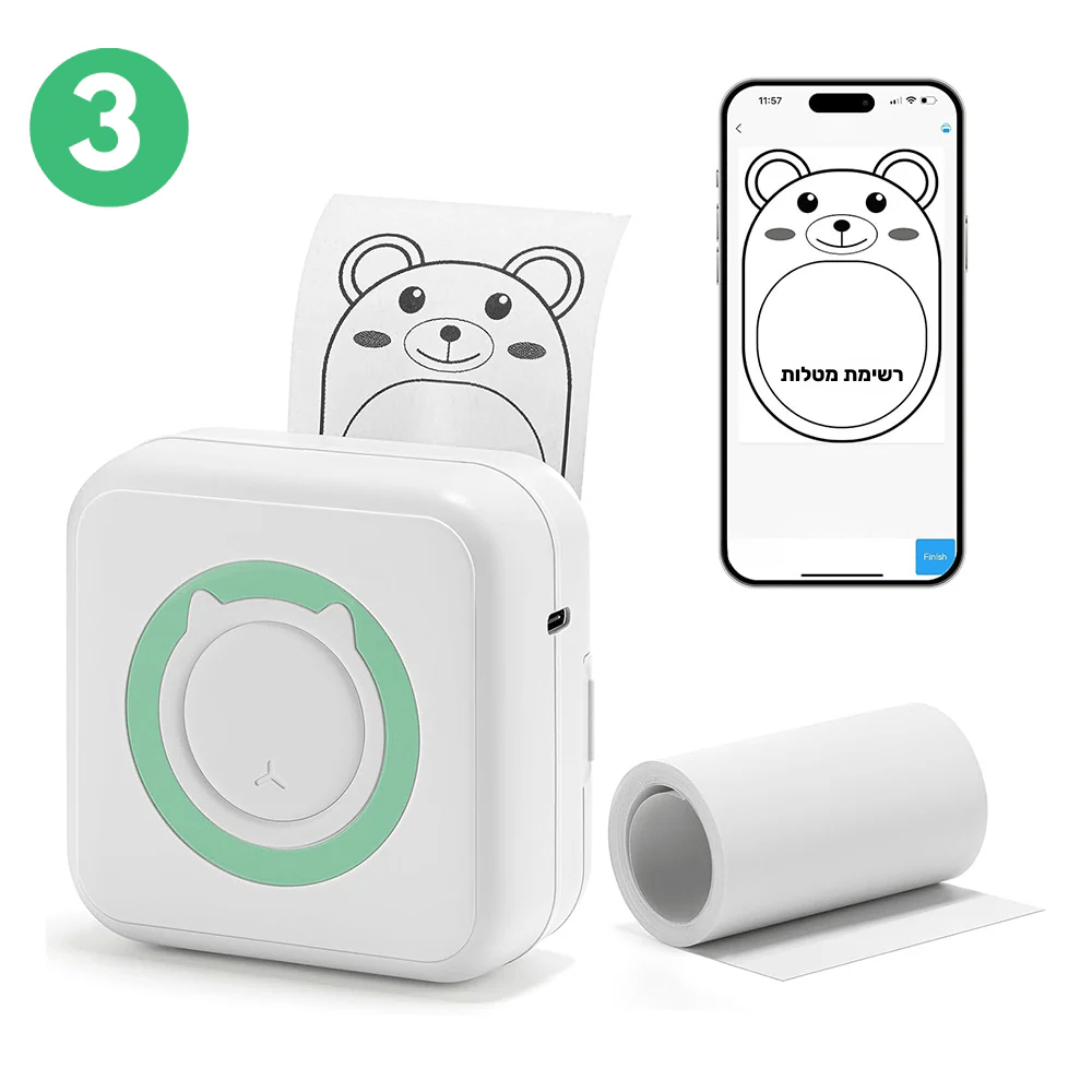 המדריך להורדת האפליקציה וחיבור המדפסת מצורף באריזה